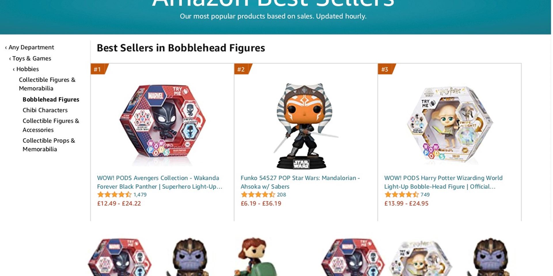 Wow! Pods, dubbed ‘the collectible for fans of character brands’ by its innovative maker Wow! Stuff, has announced a near perfect clean sweep in all measures used by Amazon UK to denote sales and other consumer demand metrics.