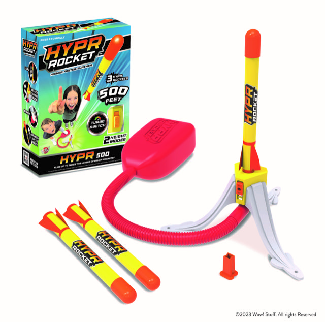 Wow! Stuff has struck a deal with Flybar Inc. for North American distribution of its Hypr brand air-powered rockets. ‘Higher, faster, further, better’ is the Hypr promise and Wow! Stuff’s unique, multi-patented take on the classic toy rocket features a Turbo mode, promising to always outperform comparable outdoor rockets.