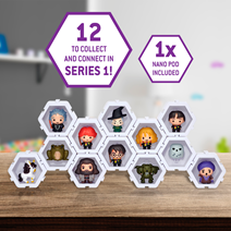 NANO PODS are the connectable collectable! Designed for fans of Wizarding World, NANO PODS are not just for kids! These super cute, nano-sized characters feature perfect details that fans of all ages will love – kids and adults alike! Each miniature stylised character is permanently attached inside their own hex-shaped display POD. Connect them together in a NANO second using the novel Tongue and Groove connecting system that slots together with a slick, satisfying touch. Proudly display your fandom by creating any design you choose and then display on a shelf or even on your wall! Spell your name or initials in NANO PODS, craft the name of your favorite brand or recreate a brand icon. Build a collection of Harry Potter characters, Harry, Hermione, Professor Snape, Luna Lovegood and more, and devote a wall or shelf to your favorite mini brands. Mix and match your favourite characters – all NANO PODS are compatible so displaying multi-brand allegiances is now easier than ever! Each sold separately, subject to availability. Colours and decorations may vary. Official licensed merchandise by Warner Bros. Consumer Products.