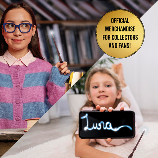 WOW! STUFF brings amazing innovation to the official licensed Warner Bros. wand collections with this 7 inch Lumos wand of Ravenclaw favourite Luna Lovegood. Join the Ravenclaw House in the Wizarding World with this perfect size wand for smaller hands or children aged 6 and above. Authentic high quality replica but scaled down to 7 inches and featuring an ultra-bright LED light-up tip activated by a hidden button on the handle. When the wand's Lumos tip is activated the real magic begins! Bonus Wow! Stuff app allows you to film yourself, or other wizards and witches, using the wand in low light to produce extraordinary images! Write your name in the sky, draw your own Patronus, replicate duelling battles or practice your best ‘Expelliarmus’, ‘Stupefy’ and ‘Expecto Patronum’ spells. Save images to your phone or tablets camera or show the pictures to your family and friends, they won’t believe their eyes! Or simply re-create the Lumos Spell and amaze your friends and family with how easy it is to magically make light appear. The Lumos Wands are part of the WOW! STUFF collection of officially licensed merchandise from Warner Bros. Collect them all! Also available in Harry Potter, Hermione Grainger, Dumbledore (the Elder Wand), and Draco Malfoy