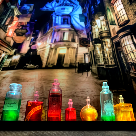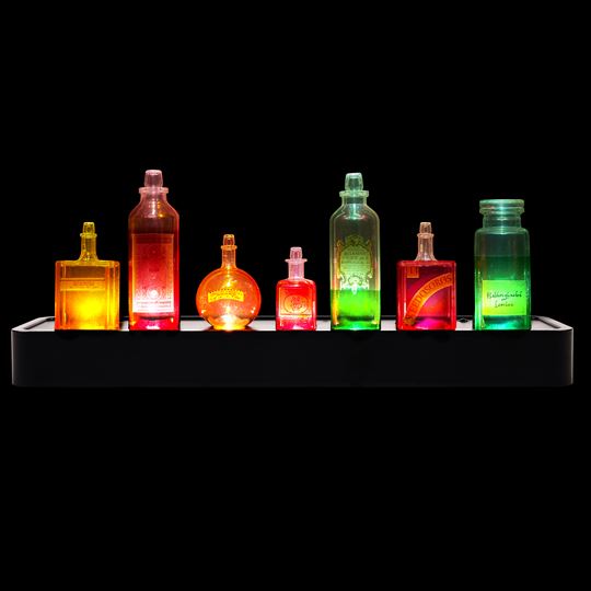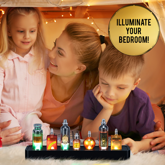 - SHELF TRAY DISPLAY – light up Potion bottles lights sit on the included shelf