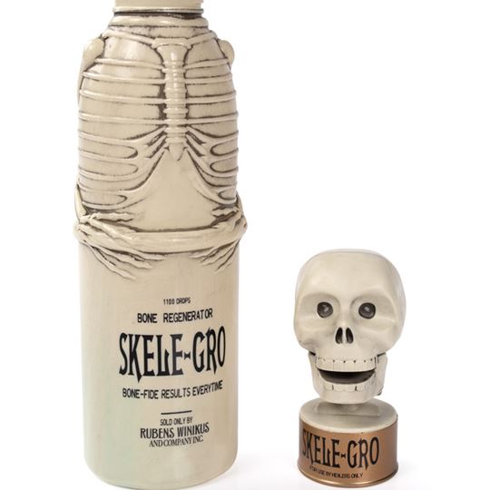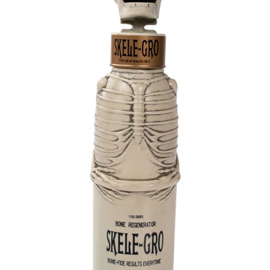 The Skele-Gro potion bottle contained a terrible tasting healing potion used by Harry Potter to re-grow the broken bones in his right arm following his injury, caused in a Quidditch match.
