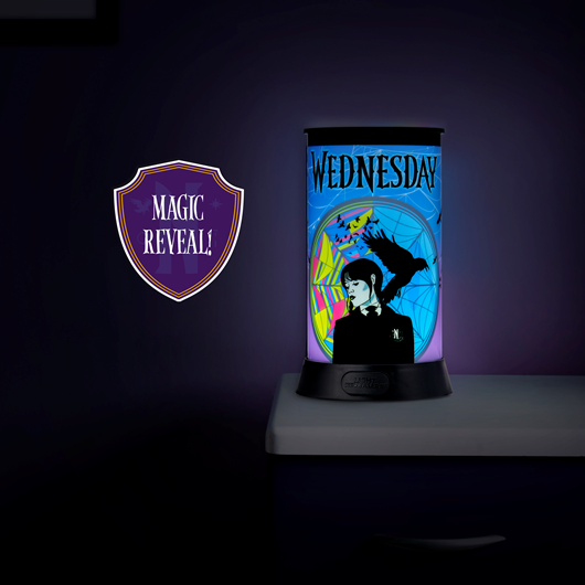 - DECORATE YOUR SPACE - The Wednesday Light Revealers Lamp is an awesome light to keep on your bedside table or desk. It's lightweight, cable free design means it can be moved and displayed wherever you choose!